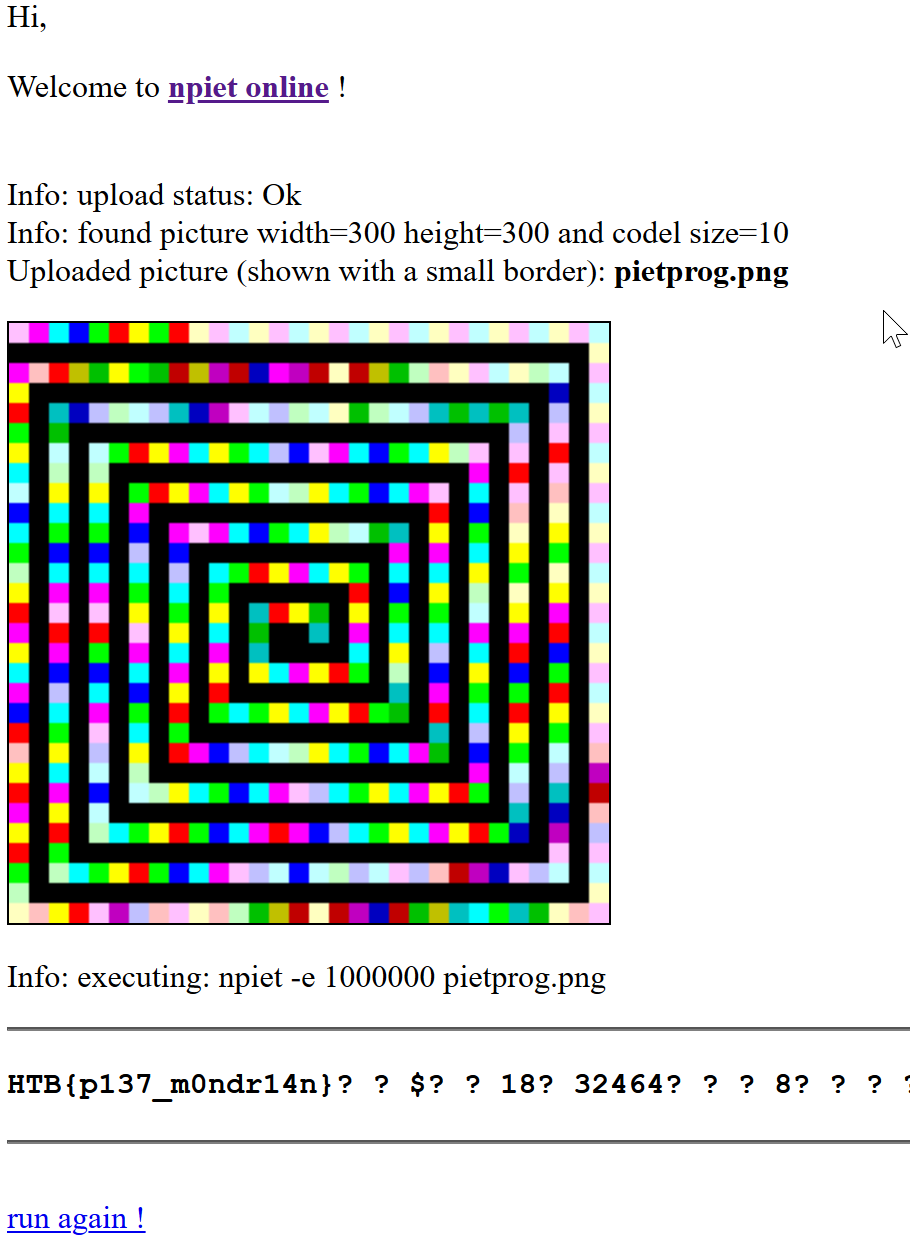 As usual, download the file and check the hint. The file on this one is a weird spiral of colored blocks and the hint is simply: