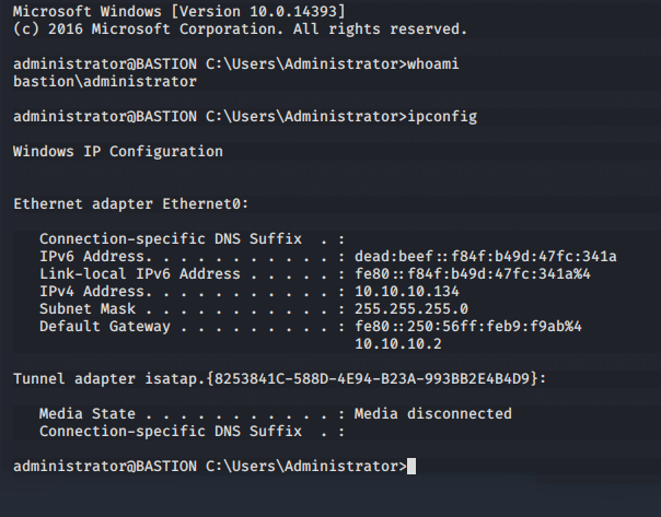 Now that is finished, SSH to the box as Administrator and grab your flag! Congrats. Another one down.