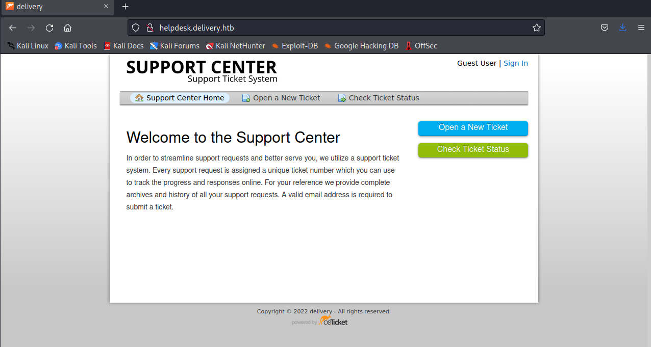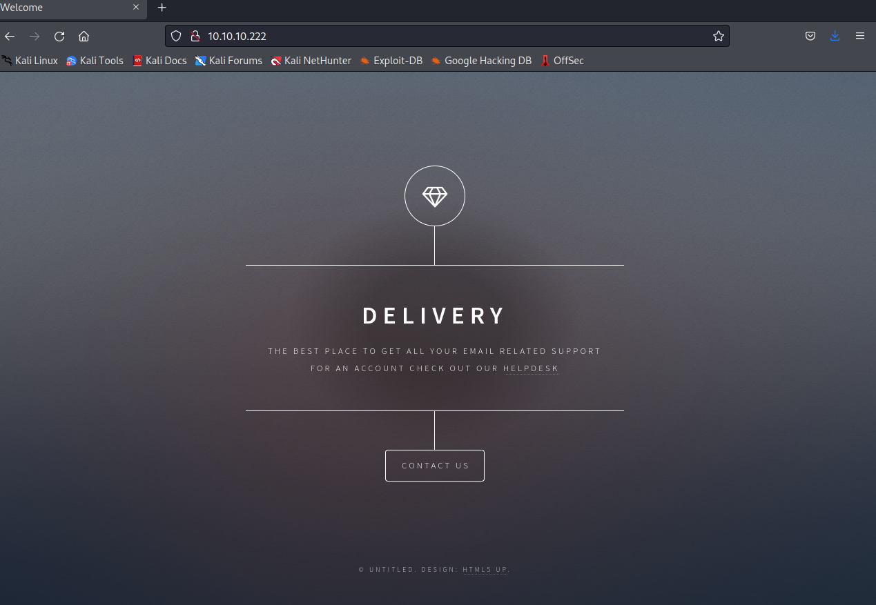We need to add 10.10.10.222 delivery.htb helpdesk.delivery.htb to our /etc/hosts file before we navigate to it.