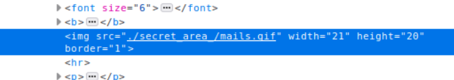 Well, that's interesting. We have a secret_area_ folder. My Dirbuster blew up with errors so I wasn't able to brute find it. Navigating to that folder shows us the mails.gif and a mails.txt file.