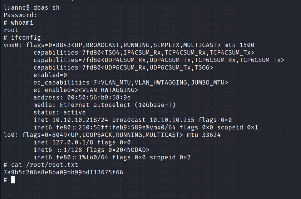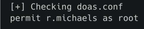 Now NetBSD doesn't have "sudo" per se, but uses "doas" which is essentially the same thing. LinEnum/LinPEAS shows that doas allows r.michaels to permit as root, but needs the root password.... We do have littlebear. Let's try it.