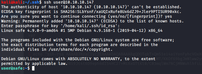 Then, we can ssh [email protected] with the passphrase for our key and have a better shell.