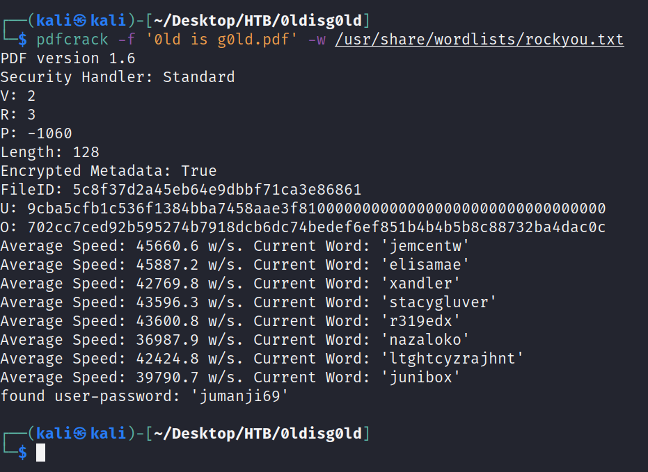 └─$ pdfcrack -f 0ldisg0ld.pdf -w /usr/share/wordlists/rockyou.txt