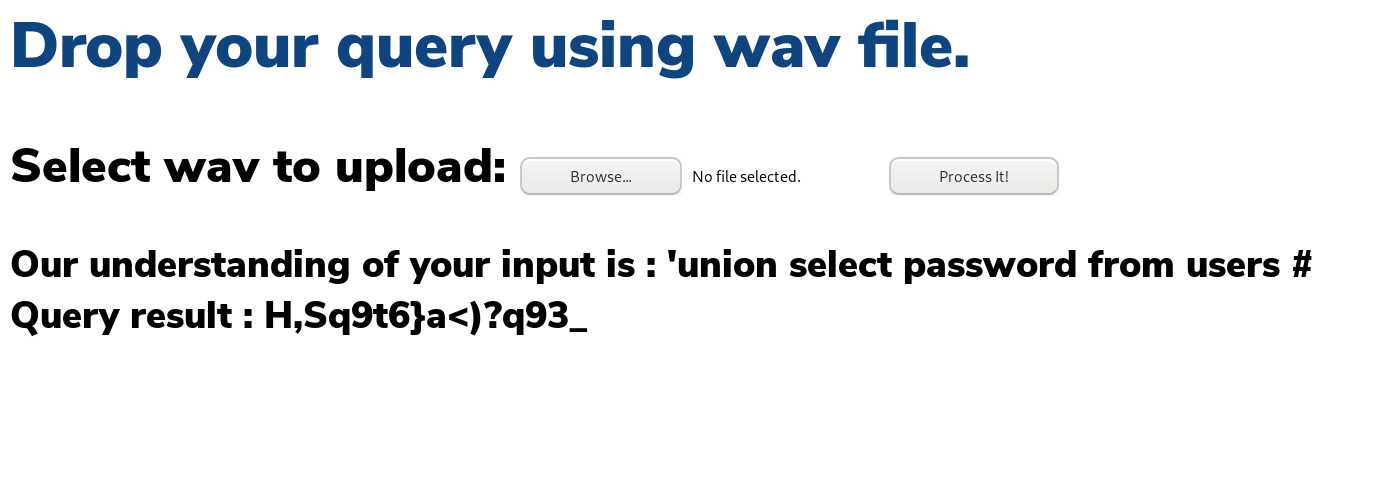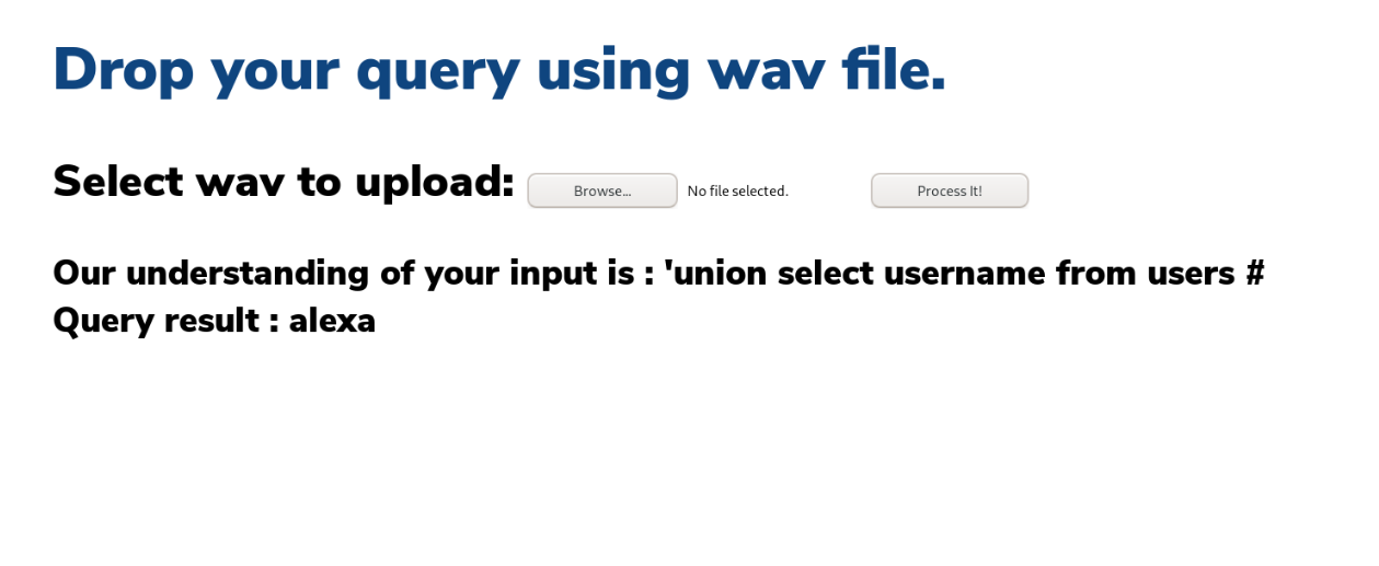 If you play the wave file, it says EXACTLY what is echo'ed. So it actually says question mark. I wonder how that's going to play with the query punctuation, but I suspect that's where the "AI" portion comes in. Let's try it out on the users tables with both username and password.