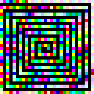 As usual, download the file and check the hint. The file on this one is a weird spiral of colored blocks and the hint is simply: