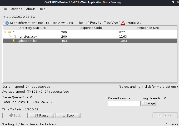 We have a box with ONLY a web port open. The site is a simple image (Merlin from Disney's Sword in the Stone). Let's Dirbuter it and see what we can find. Shortly after that starts running, it finds a "transfer.aspx" page. Let's check there