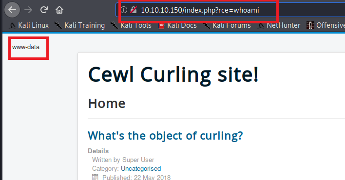 If we navigate to http://10.10.10.150/secret.txt, we are given a string of "Q3VybGluZzIwMTgh". We can decode in cli or a https://www.base64decode.org/.