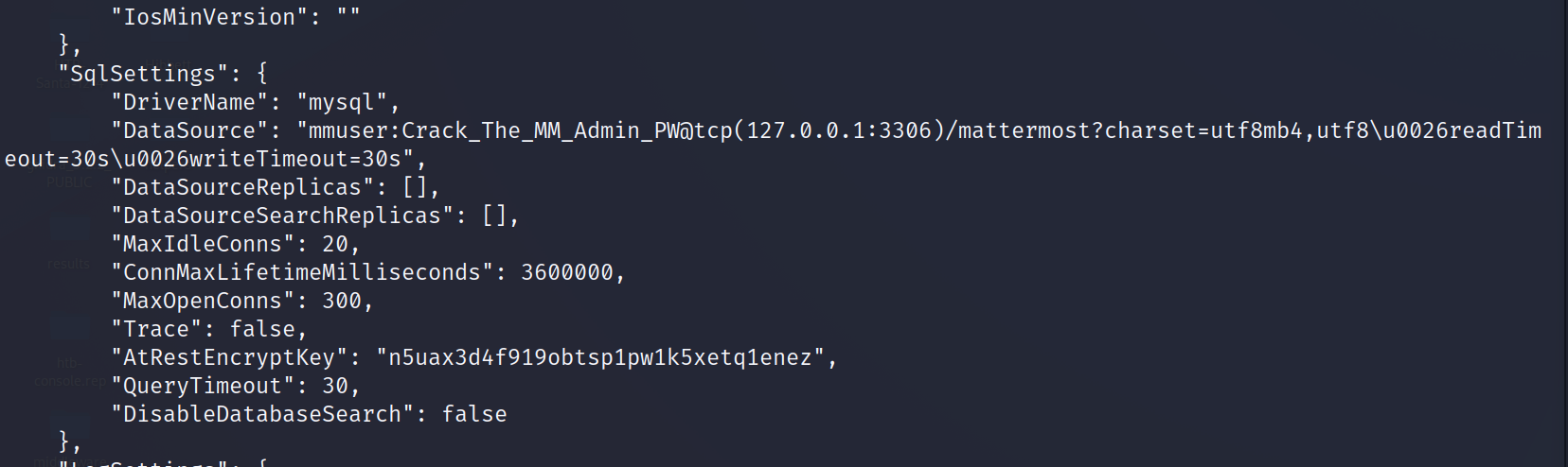After researching MatterMost, we found that the config.json file may have environment variables (like a DB password for instance) store in it. https://docs.mattermost.com/configure/configuration-settings.html Let's take a look-see and see if we're right.