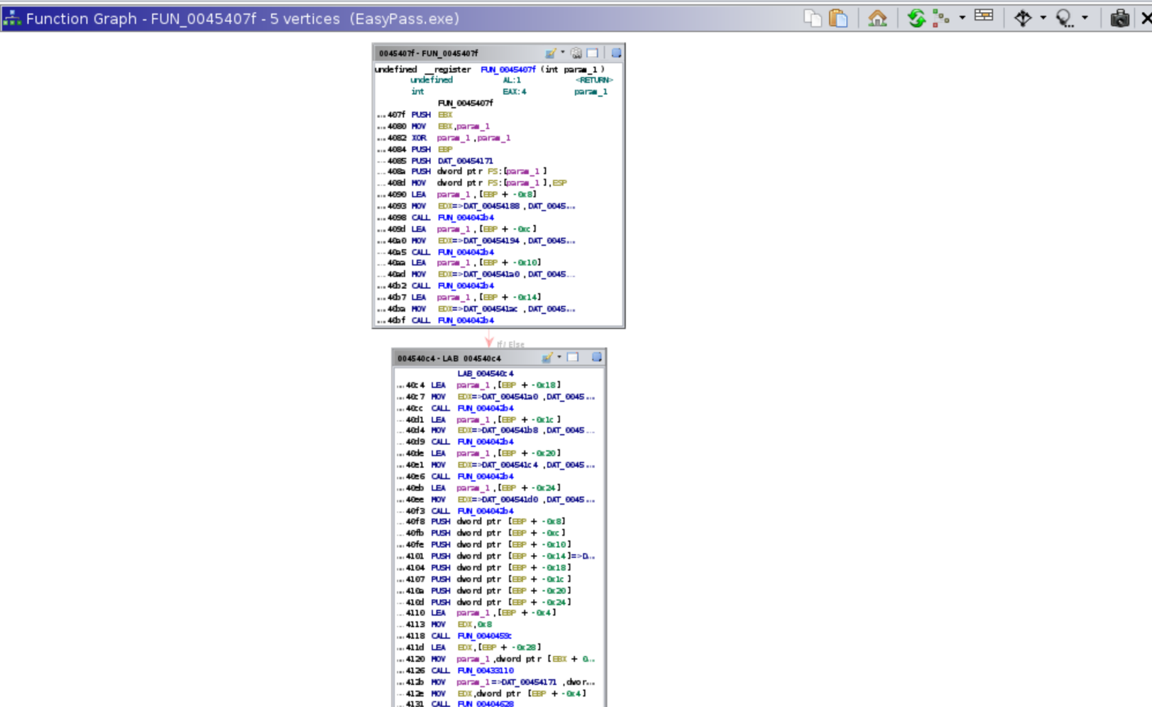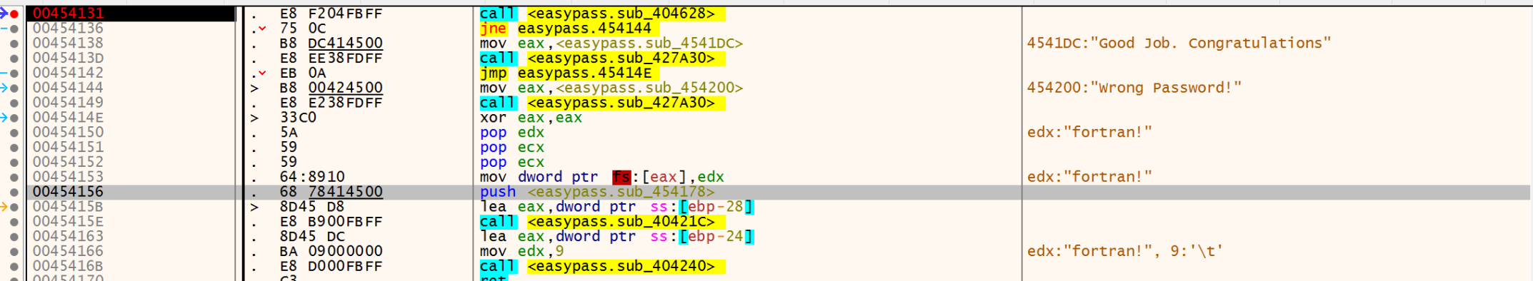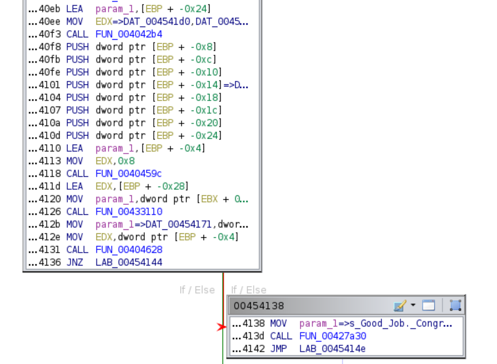 What we find is a function call to FUN_00454138 that is the Success message. So what part of the check function calls FUN_00454138?