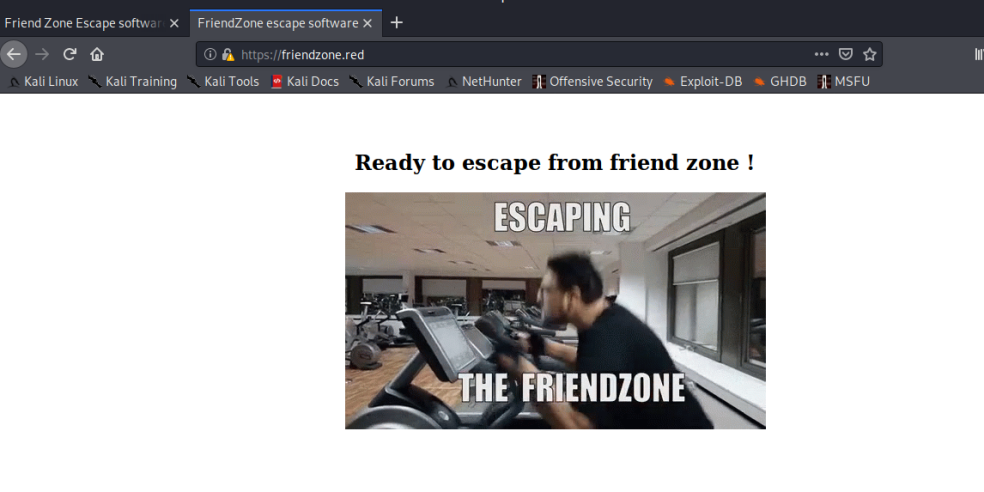 Let's add friendzone.red to our HOSTS file and see if we can get to an HTTPS page.