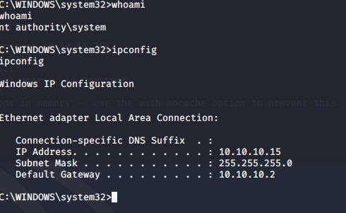 [*] Meterpreter session 1 opened (10.10.14.28:4444 -> 10.10.10.15:1032) at 2020-04-02 21:16:02 -0400