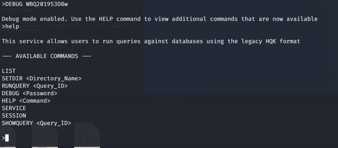 DEBUG mode with the newly discovered password.