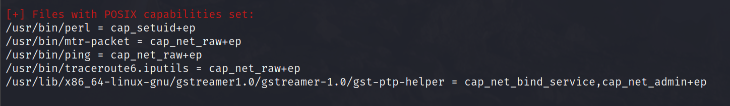 LinEnum shows POSIX/SETUID capabilities on /usr/bin/perl. This is another GTFOBins box. I love GTFOBins. They are so fun to play with.