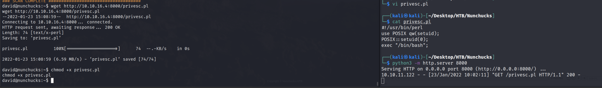 All we need to do is create a simple Perl script that bypasses AppArmor (annoying thing that it is) and we should have a shell as root.