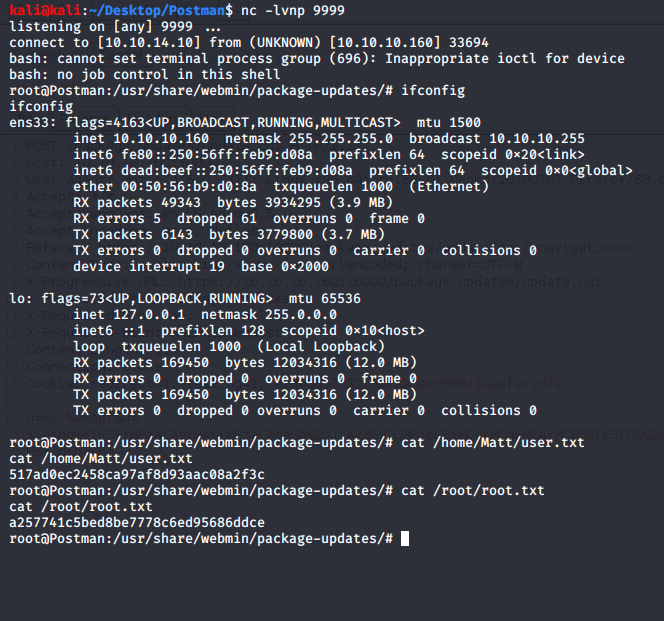 It looks like Matt has a password of computer2008. Move from redis to Matt and grab the user flag. There's not a lot more we can do in CLI right now, so let's jump over to port 10000 and it's MiniServ WebMin page. Logging in with Matt:computer2008, we can grab the Webmin version (1.910) and see what's there. I eventually come across this Proof of Concept on GitHub and try it out, crafting my payload using: