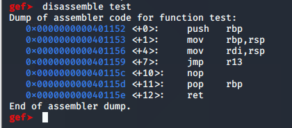 0x0000000000401159 <+7>: jmp r13