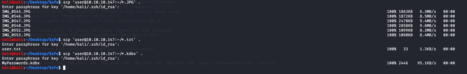 Now that we have a somewhat better shell, we can see what is in the user folder and (more importantly) SCP those files over to our machine.