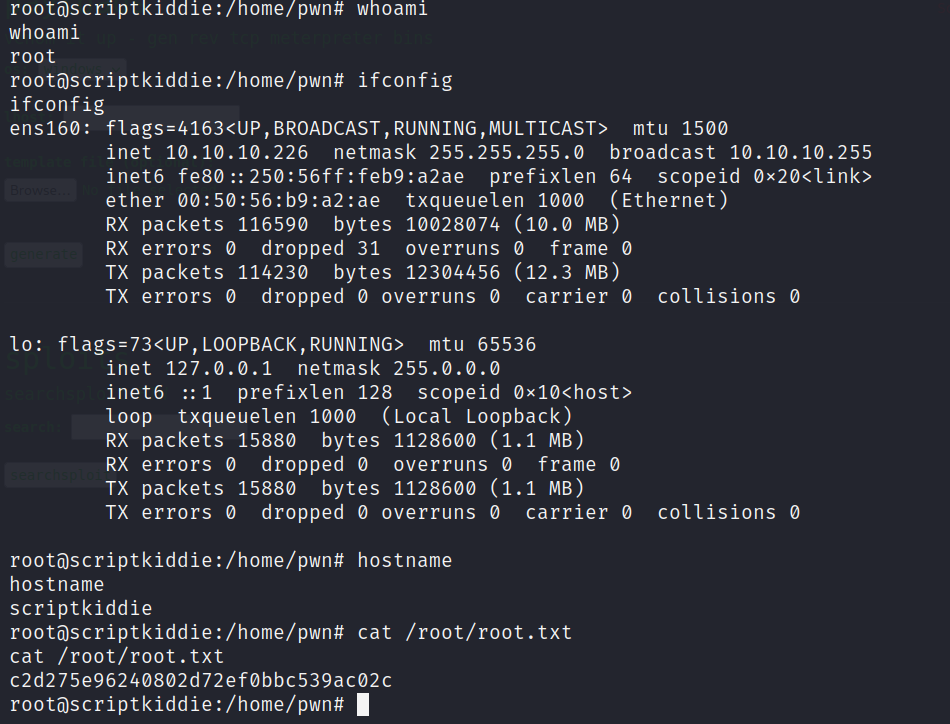 root@scriptkiddie:/home/pwn# cat /root/root.txt