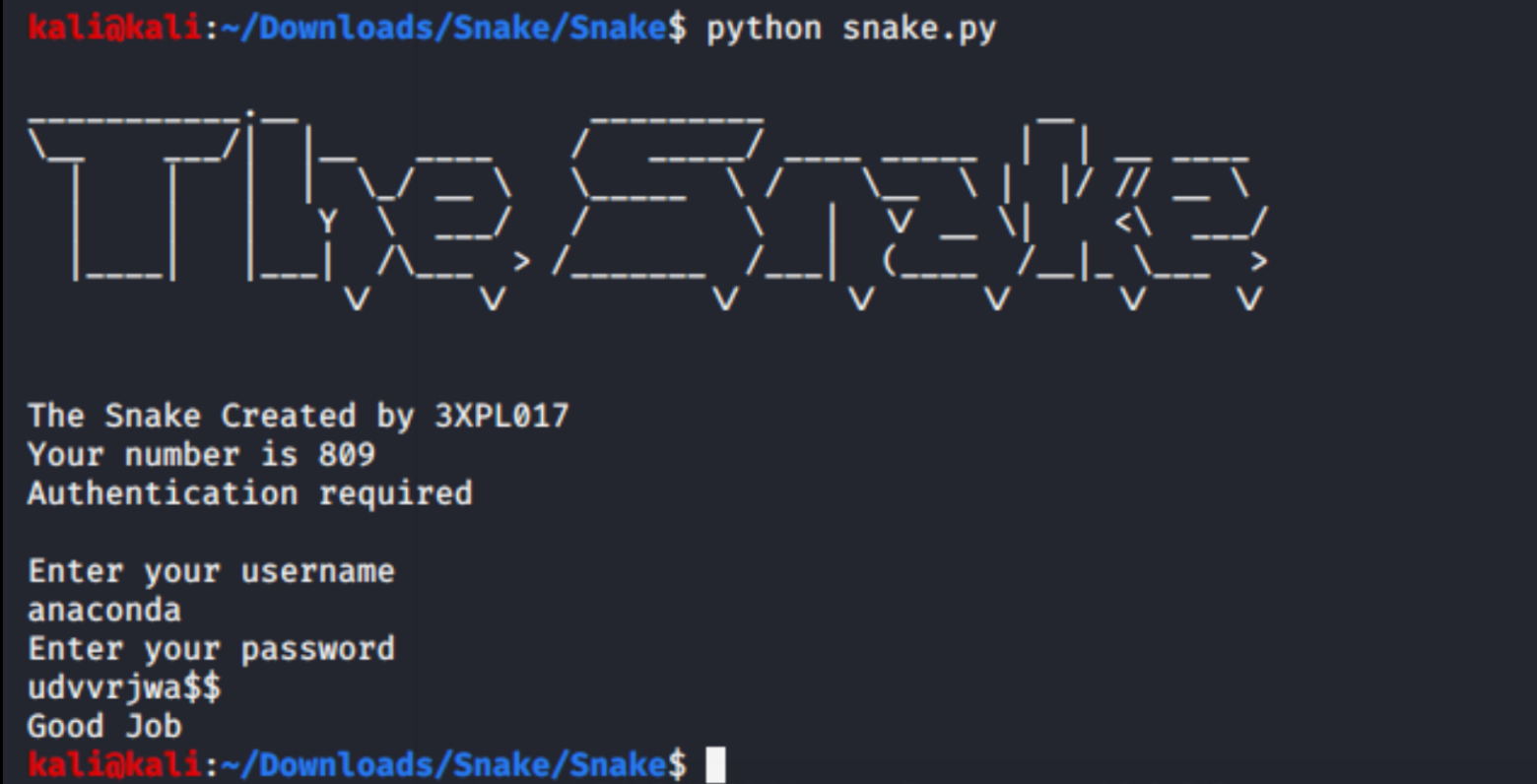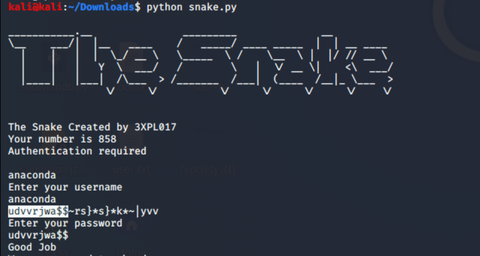 Examining the code throws a GLARING flaw. If user input == slither! Meaning, I can print slither and make the username visble. There is also for loop for determining keys, Let's play with both of those.