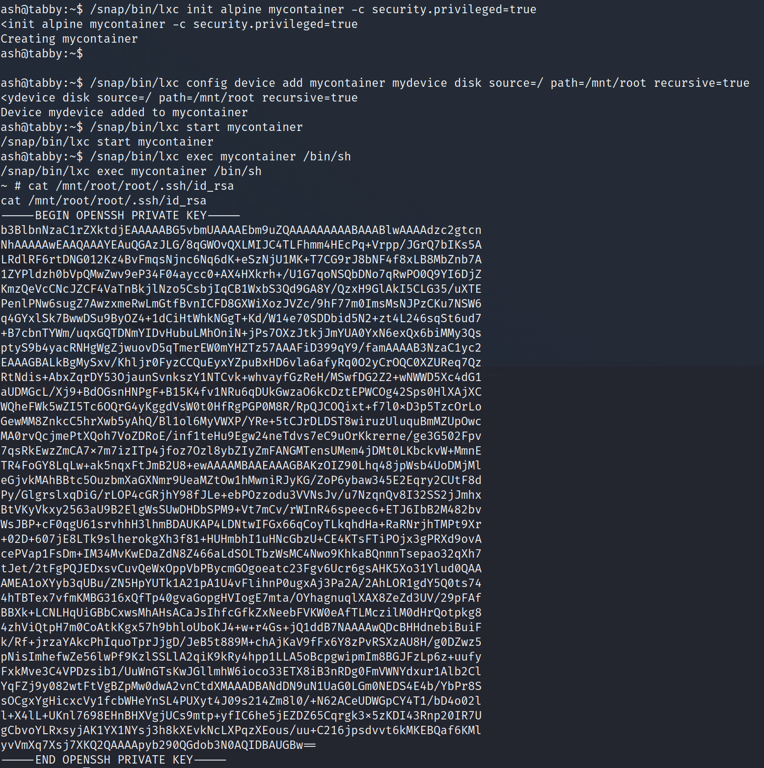 So, ash is a member of lxd. That means we can upload a malicious container and use it for privesc.