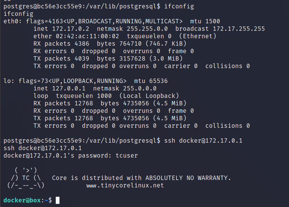 postgres@bc56e3cc55e9:/var/lib/postgresql$ cat user.txt