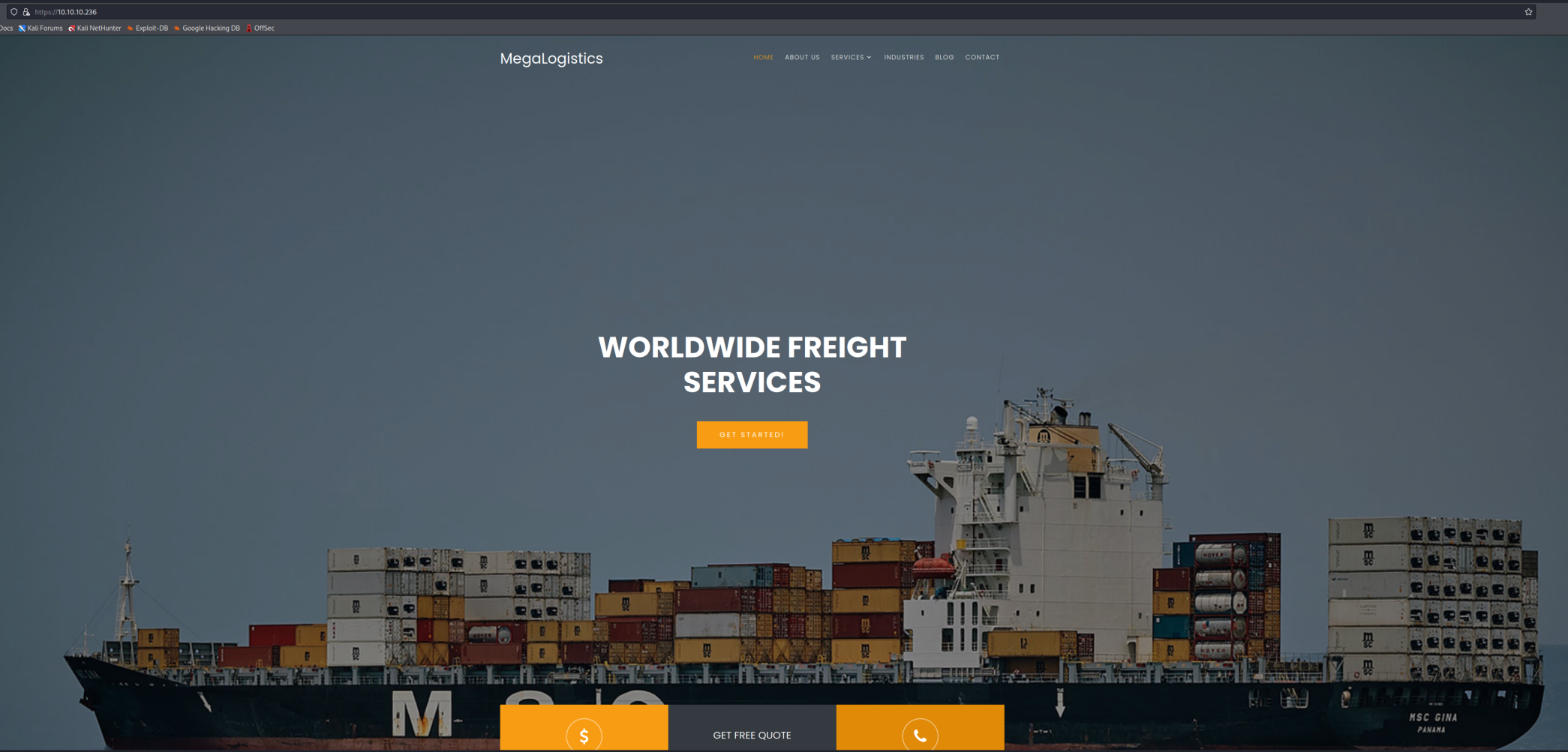 Now navigate to https://10.10.10.236 and https://admin.megalogistic.com