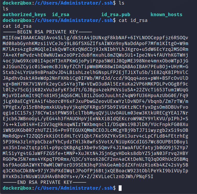 In the /c/Users/Administrator/.ssh folder is the private key for the Administrator user.