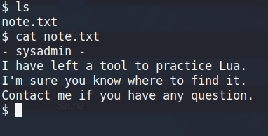 We have this mention of Lua and to a sysadmin. So, first let's check sudo -l and see what we can actually do.